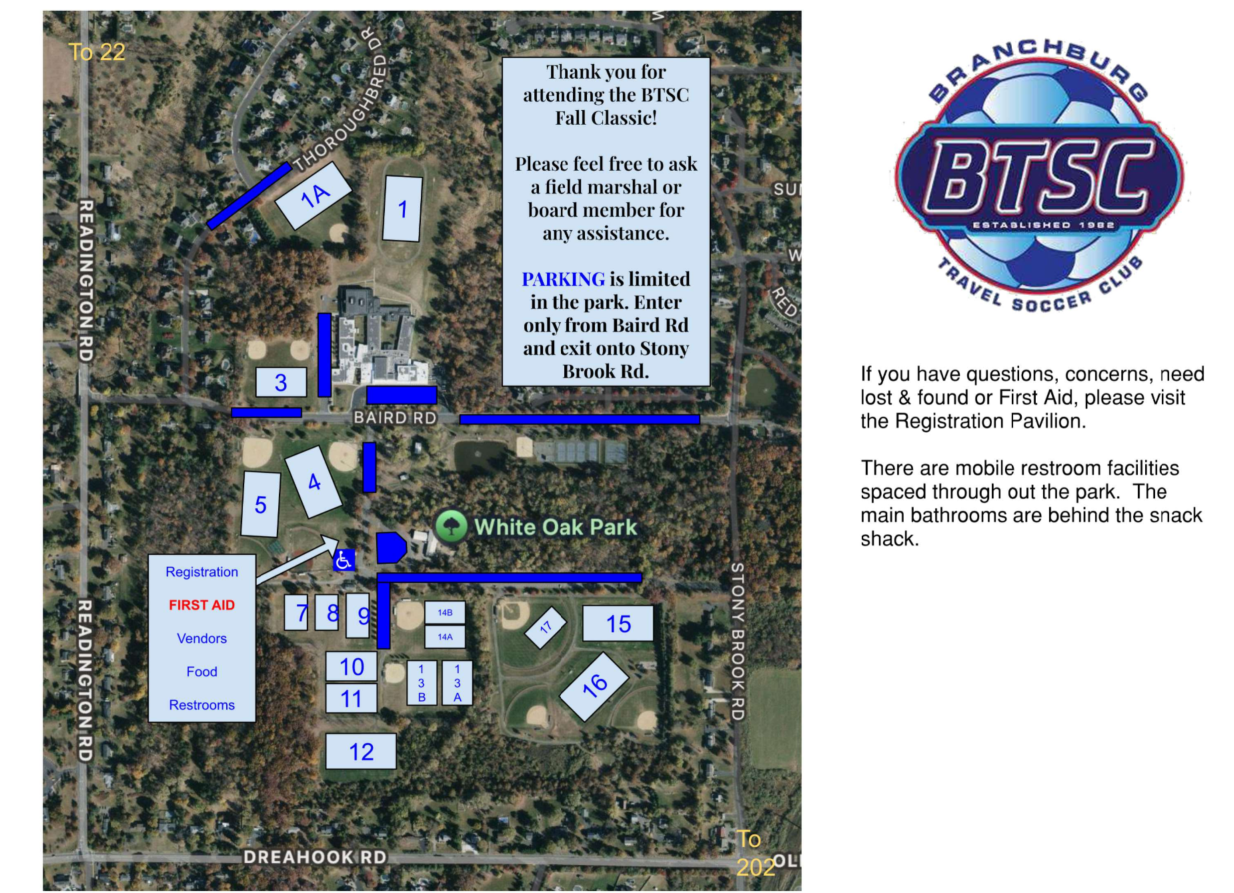 - All games are played at our 127 acre White Oak Park venue. Park once, leave the car and enjoy the games.
